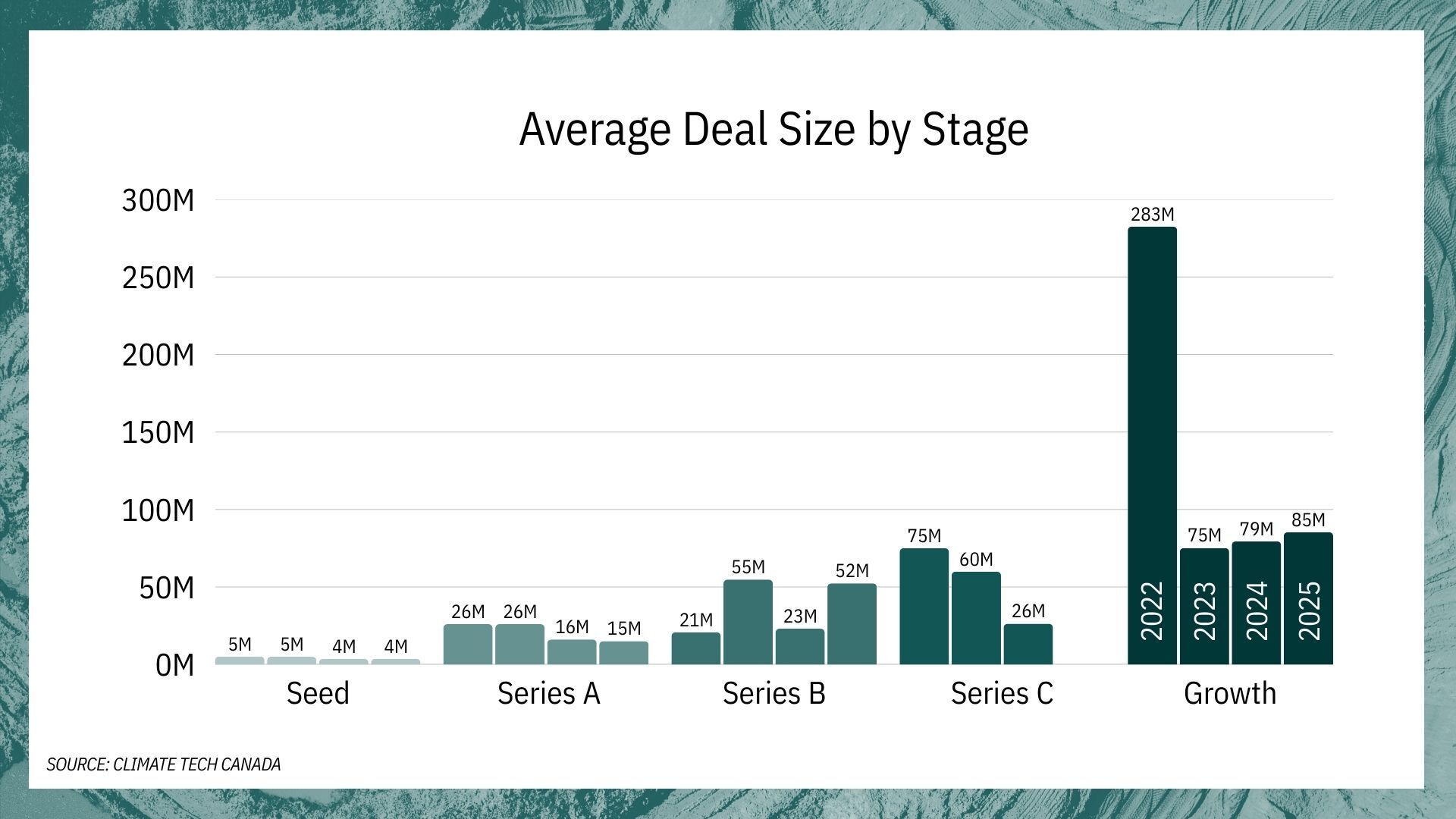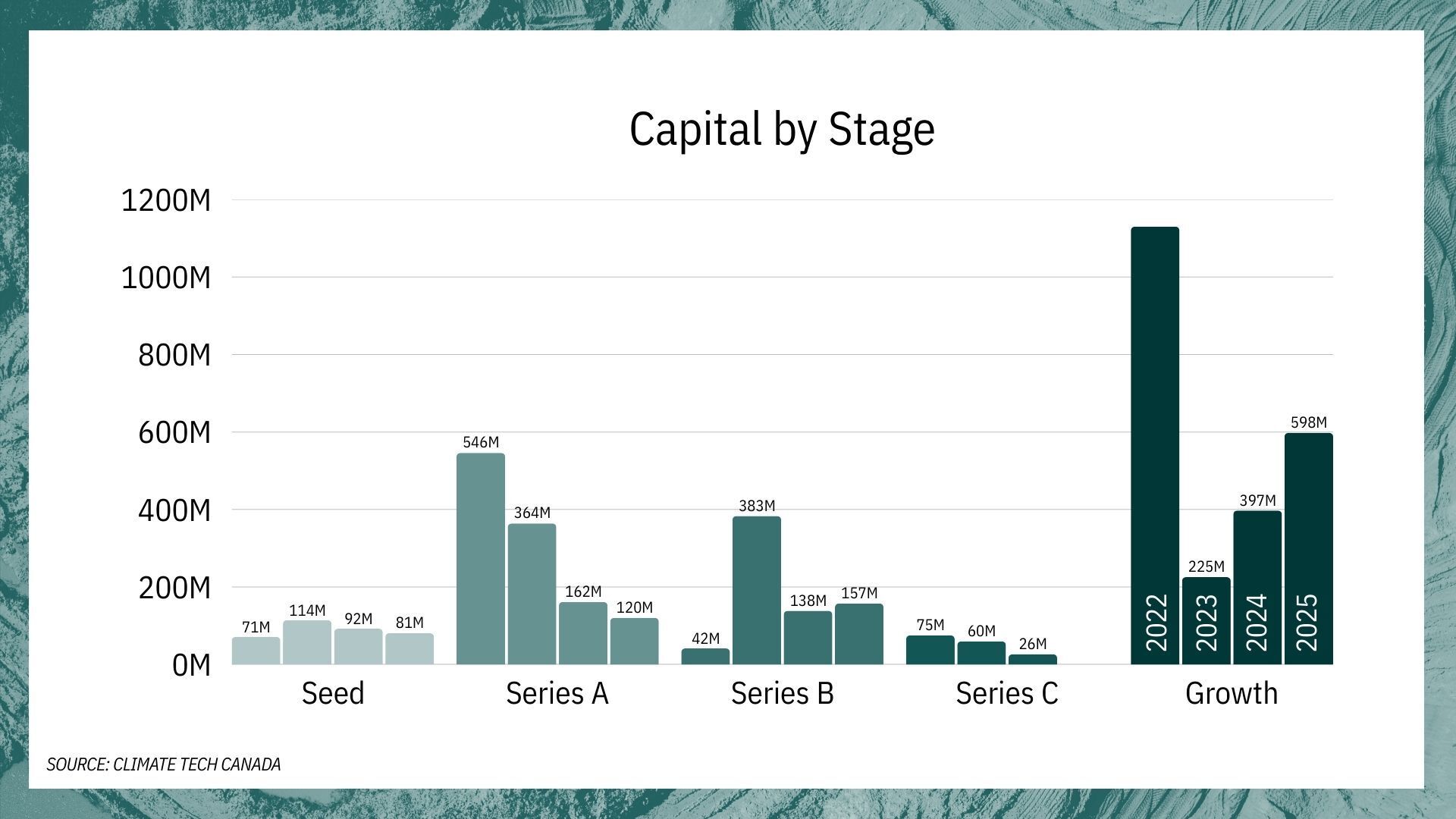 Institutional capital will back companies with proven technology and clear paths to revenue. Government funds like the Canada Growth Fund acted as kingmaker in multiple deals.